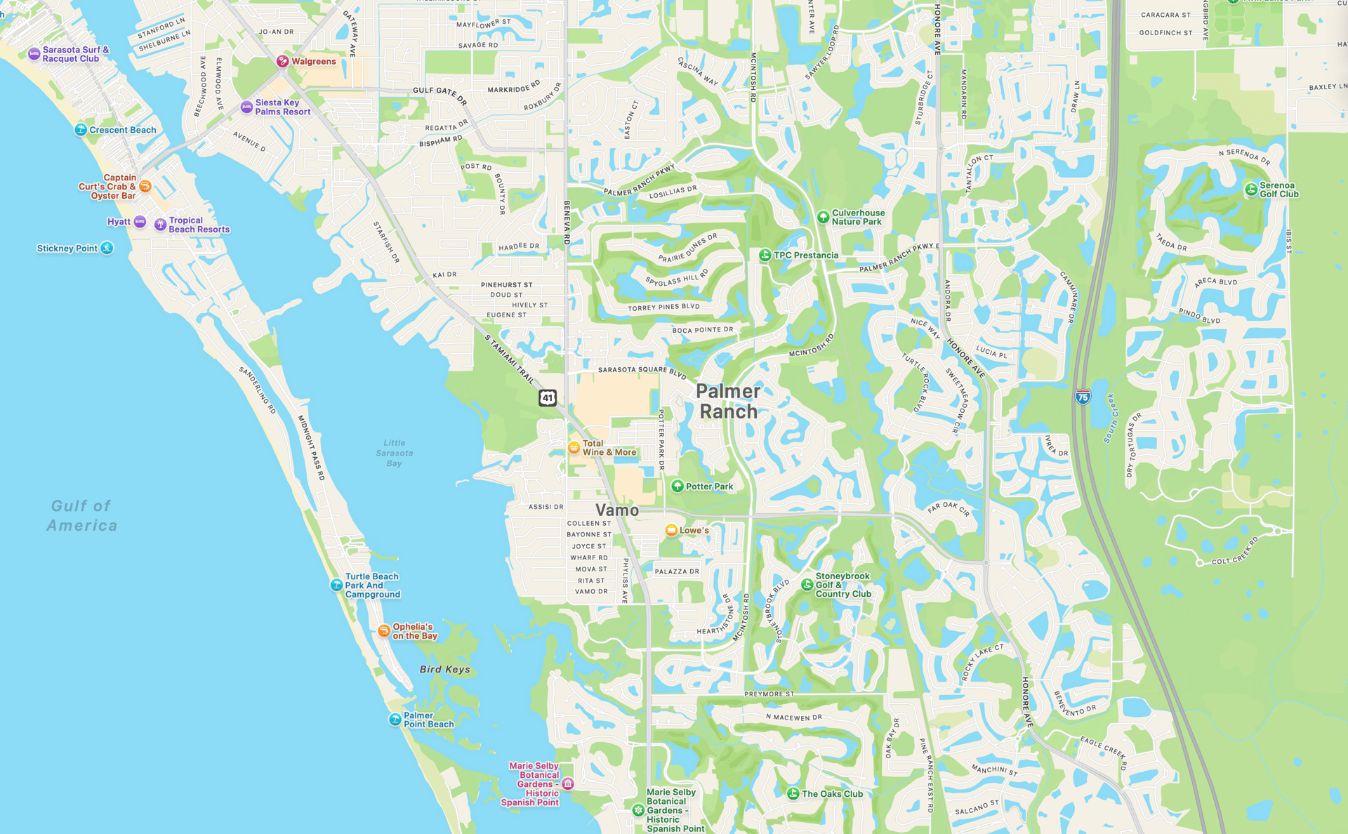 Palmer Ranch sits in South Sarasota, generally stretching from areas near Clark Road and Honore Avenue down toward Central Sarasota Parkway and beyond. One of the biggest advantages of this location is connectivity:
